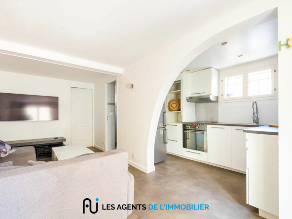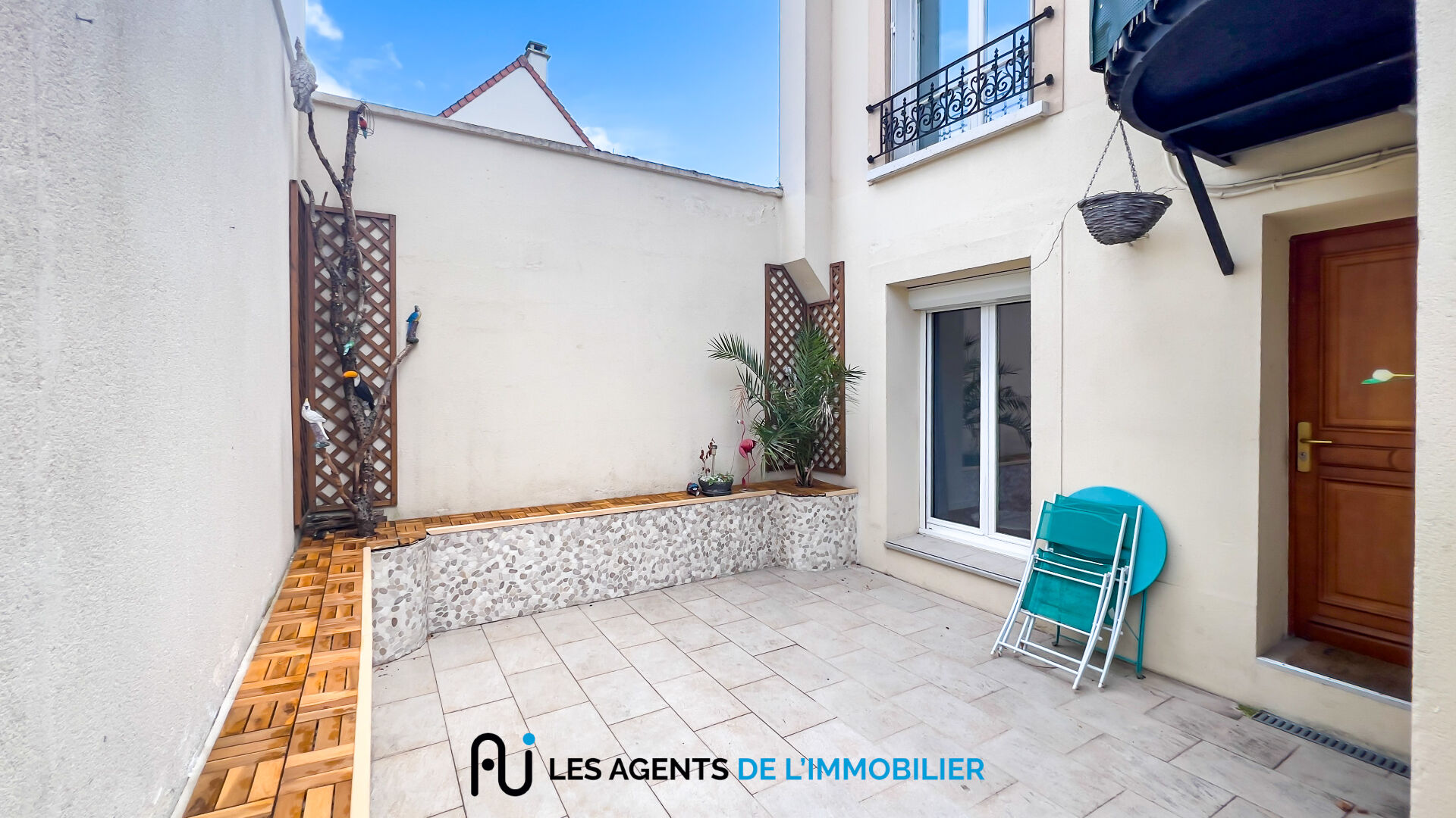 Le plus, et c’est rare, une cour privée en accès immédiat depuis le salon et une entrée privative.