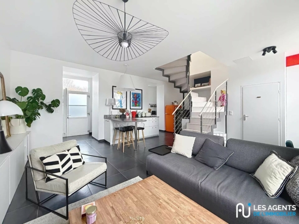 Appartement 3 pièces Dans le secteur recherché de Saint-Euverte / Faubourg Bourgogne à Orléans, ce superbe appartement en duplex offre un art de vivre rare, à mi-chemin entre appartement et maison. Situé en second rang, au calme, il bénéficie d’un accès totalement indépendant au sein d’une copropriété de standing, ancien couvent entièrement réhabilité en 2014, sécurisée par barrière. Le rez-de-chaussée s’ouvre sur une entrée avec placard, un WC indépendant, puis une pièce de vie de 33 m², baignée de lumière, avec cuisine ouverte de 6 m² disposant de nombreux rangements et un espace buanderie fonctionnel. À l’étage, un palier dessert un espace bureau, une chambre avec placard ouvrant sur un balcon, ainsi qu’une salle d’eau avec WC. L’ensemble séduit par sa décoration soignée, ses volumes harmonieux et son ambiance chaleureuse. Le bien dispose de deux places de parking privatives, d’une bonne performance énergétique, et se situe au pied de la ligne de bus n°2, alliant confort de vie, sérénité et praticité au quotidien.