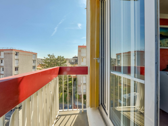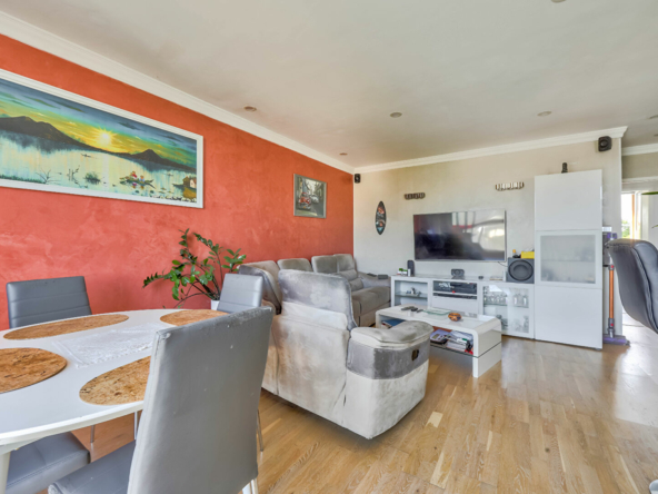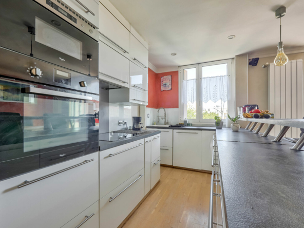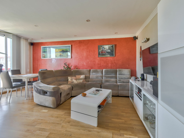 séjour lumineux avec cuisine américaine équipée (31 m²) exposé Sud avec accès balcon, 3 chambres, salle d’eau, WC indépendant.