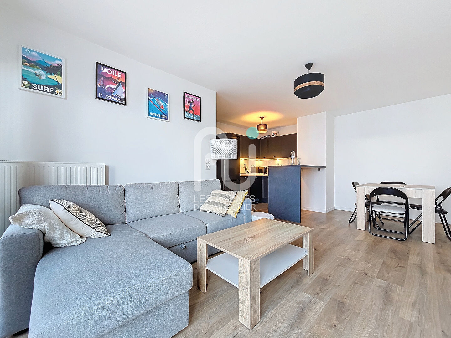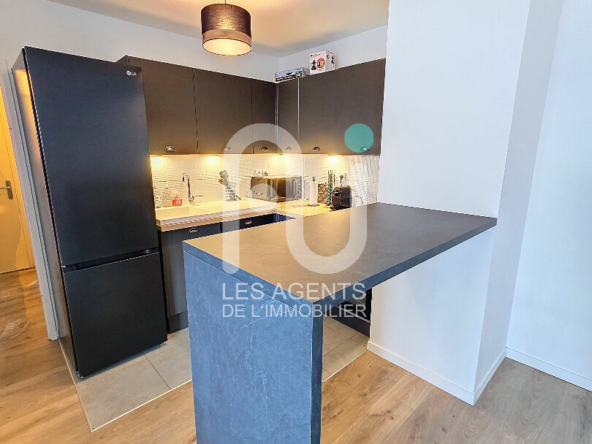 Ici, un appartement proposant une entrée, un séjour de 21m², une cuisine américaine, 2 chambres de 11.3 et 9.5 m², une salle de bain, WC, balcon et balcon. Appartement possédant une exposition sud ouest, clair et calme.