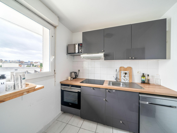 L’appartement se compose d’une entrée, d’un séjour donnant sur un balcon de 5 m² avec une vue dégagée, d’une cuisine ouverte, d’une salle de bains, ainsi que de WC séparés. Grâce à une configuration bien pensée, une transformation en deux pièces est tout à fait envisageable.