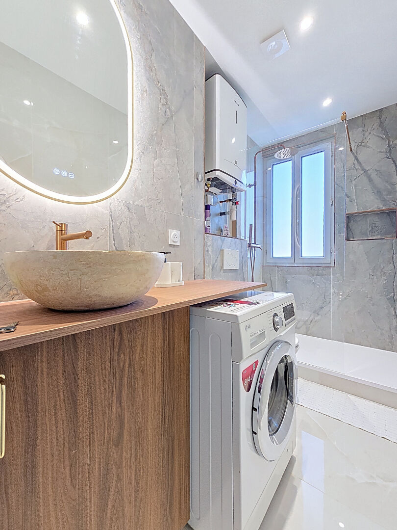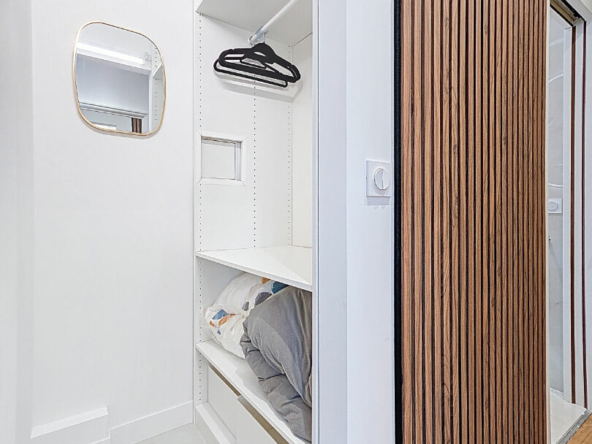 le logement est composé: entrée avec espace dressing, pièce principale avec cuisine équipée et aménagée, salle d’eau moderne ave douche à l’italibne wc et machine à laver.