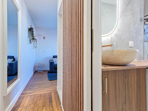 Le bien est en excellent état général : le parquet en chêne massif, l’installation électrique, la plomberie, les menuiseries et les revêtements muraux ont tous été soigneusement entretenus ou rénovés, permettant une installation immédiate sans aucun travaux à prévoir. Le chauffage collectif est compris dans les charges.
