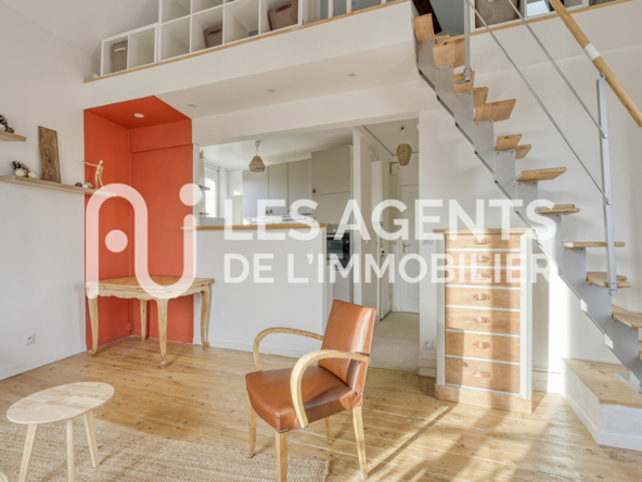Sa surface de 60 m² au sol (pour environ 50 m² de superficie habitable) comprend : séjour parqueté avec cuisine ouverte équipée par lequel on accède à une grande mezzanine de 20 m² (bureau / télétravail / couchage d’appoint), chambre avec rangements,, salle d’eau, WC séparés.