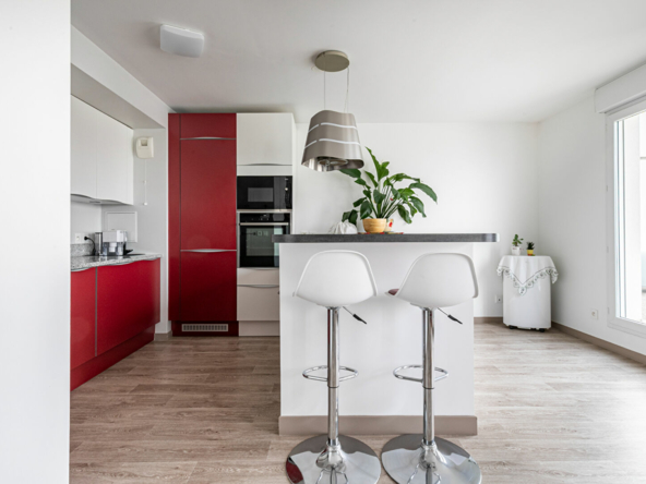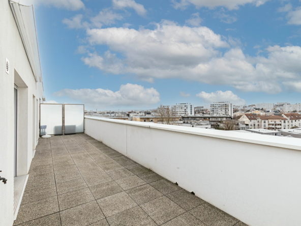 A deux pas de la place Dampierre, de l’école Paul Langevin et de la crèche des Petits Moulins, dans un immeuble édifié en 2017, très bel appartement de 87m² en parfait état, situé au dernier étage avec ascenseur et agrémenté de ses 66m² de terrasses sans vis à vis, exposées Ouest / Est. Il se compose d’une entrée avec wc séparé et buanderie, d’un séjour et sa cuisine ouverte, entière équipée et aménagée, le tout sur terrasse plein ouest. Chambre principale avec placard, disposant de sa salle d’eau et 2 autres chambres avec placards donnant toutes sur terrasse côté est, salle d’eau. Parking double. Local vélo.
