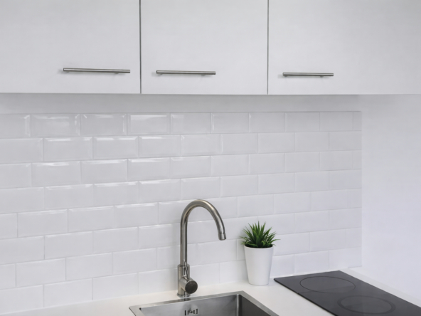 Une cuisine ouverte, aménagée et entièrement équipée.