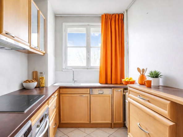 La cuisine indépendante, Côté nuit, deux chambres confortables offrent calme et intimité. Une salle d’eau moderne et un WC séparé renforcent le confort quotidien.