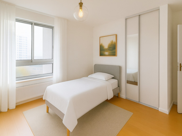 L’appartement est situé à proximité immédiate de nombreux commerces, écoles, transports (métro, bus), du marché, de la mairie, de la bibliothèque et du conservatoire.