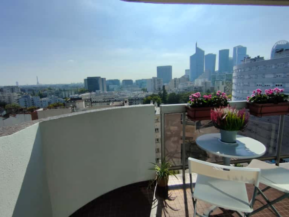 Comprenant : Balcon de 5 m² plein sud, avec une vue dégagée sur Paris, la Tour Eiffel, La Défense et Montmartre, 3 chambres , Dont une suite parentale avec salle d’eau privative, Séjour spacieux et cuisine ouverte, offrant une belle convivialité, Salle de bain et salle d’eau séparées, 2 WC dont un indépendant , cave et parking.