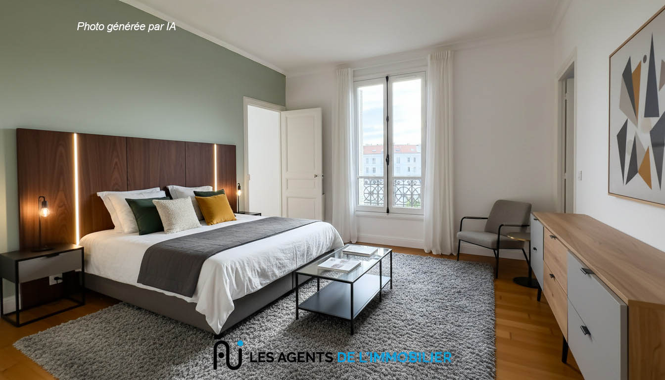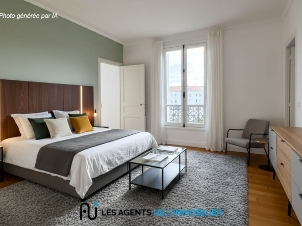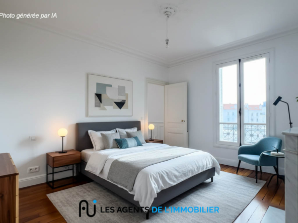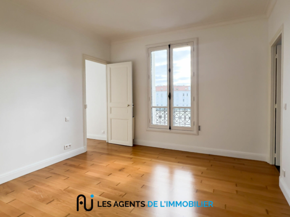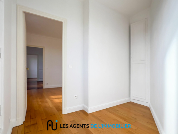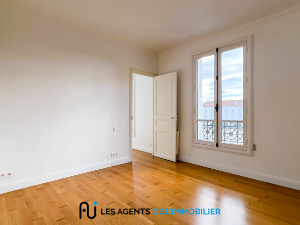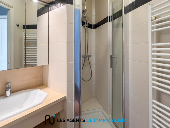L’appartement se compose d’une entrée avec placard, d’un salon lumineux, de deux chambres, d’une petite pièce pouvant servir de bureau ou de dressing, d’une salle de douche, d’une cuisine aménagée et de WC séparés.