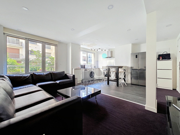 appartement T3 de 48 m² situé en, rez de jardin surélevé donnant sur verdure sans vis à vis d’un bel immeuble de standing des années 1980, plein de charme et d’authenticité. comprenant : entrée avec rangement, séjour- cuisine aménagée équipée, 2 salle de bains, 2 petites chambres possibilité d’en faire 1 grande , 2 w.c et un dégagement