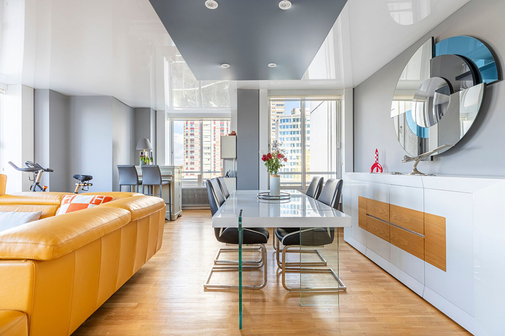 Au 7e étage, au sein d’une résidence de standing hautement sécurisée avec un service de gardiennage 24h/24, magnifique appartement familial d’une surface de 108m2 Loi Carrez se composant comme suit :