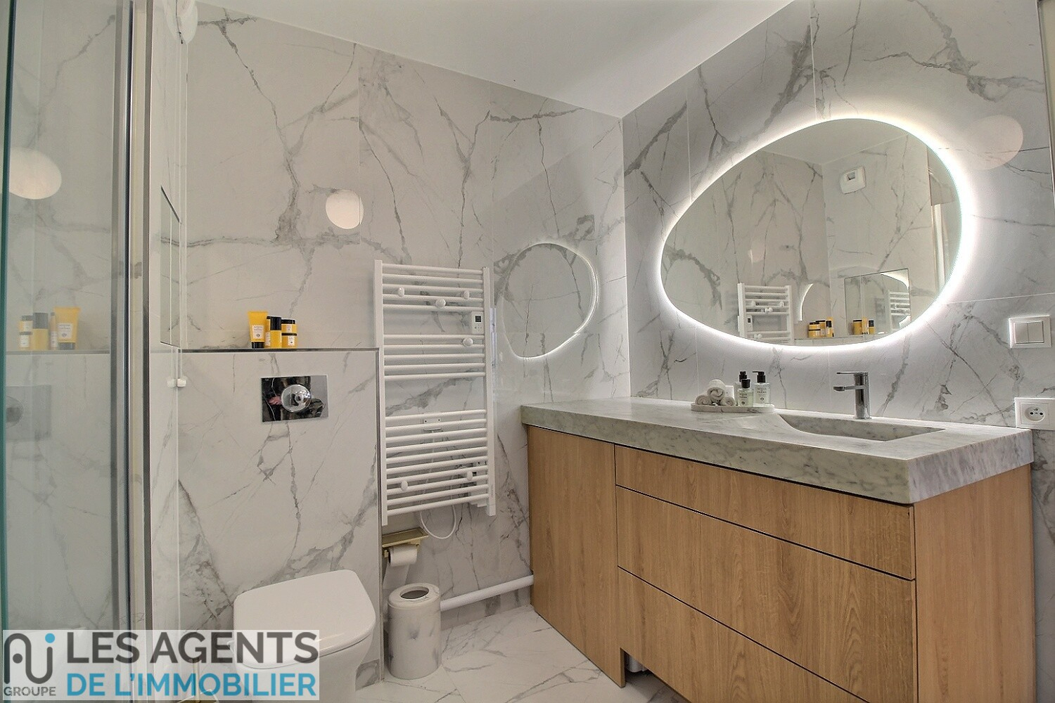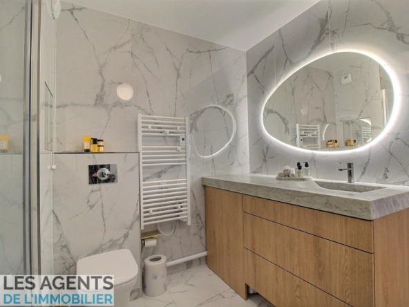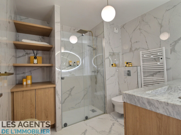 Bien agencé et sans perte d’espace il est composé d’une entrée avec nombreux rangements réalisés sur mesure. La cuisine est ouverte sur le séjour permettant plus de convivialité. Une superbe salle d’eau en marbre avec une grande douche à l’Italienne, incluant le wc et une chambre avec rangement.