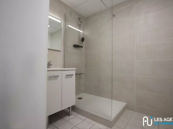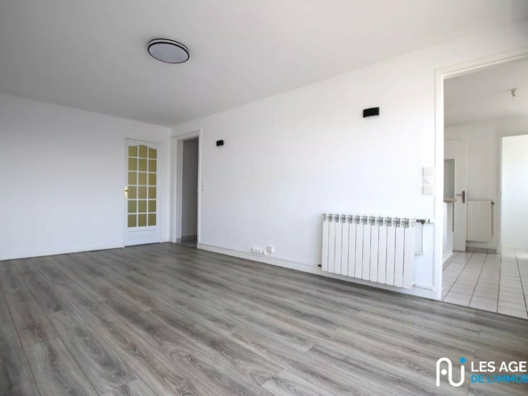 Il comprend une entrée, 2 chambres dont une de presque 13 m², une salle d’eau, un wc indépendant, un cellier, une cuisine fermée, et un séjour lumineux avec accès au balcon !