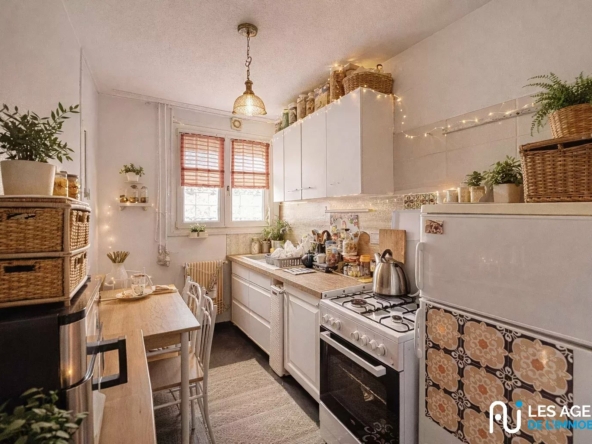 Vous disposez également d’une cuisine indépendante, un cellier, de deux chambres dont une donnant accès directement au balcon, d’une salle de bain, un wc séparé et de nombreux rangements.