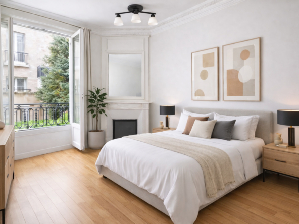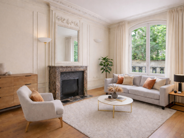 Cet appartement séduit par son cachet : parquet ancien, moulures, cheminée et grandes ouvertures offrant une belle luminosité.