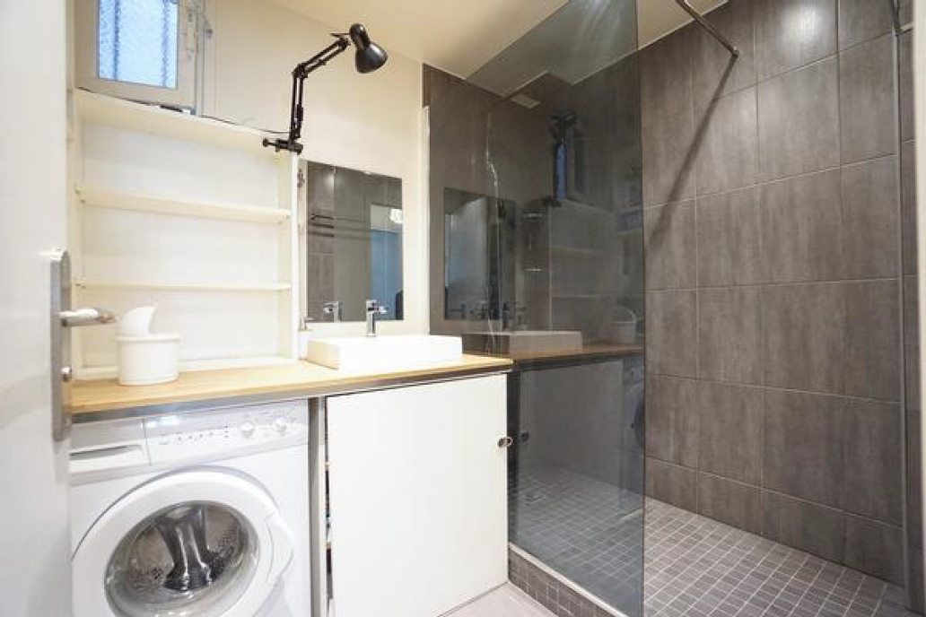 Pièce de vie de 22m² avec cuisine ouverte tout équipée et espace bureau très fonctionnel. Un coin nuit avec une verrière est aménagé pour plus de tranquillité. Une salle d’eau avec sa douche à l’italienne et des WC suspendus séparés complètent ce très bel intérieur. Une grande cave est vendue avec le bien.