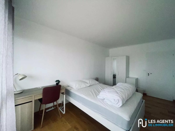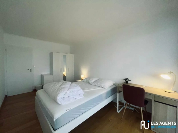 La chambre se situe dans un appartement en colocation, comprenant : un séjour lumineux, une cuisine équipée, une salle de bain, WC séparés ,parties communes entièrement rénovées ainsi qu’un bacon.