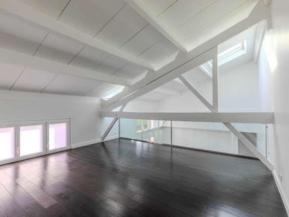 L’escalier d’entrée vous mène à une vaste pièce de vie avec plafond cathédrale doté de larges fenêtres et de Vélux garantissant une belle luminosité en toute saison. La grande cuisine tout équipée et dotée d’un plan de travail en granit prolonge cet espace. Au même niveau se trouvent une chambre avec une salle d’eau avec WC attenante ainsi qu’une seconde salle d’eau avec WC. Une généreuse mezzanine de plus de 23m² pouvant accueillir un grand bureau, un salon ou une 4è chambre surplombe cet espace. Deux lumineuses chambres indépendantes au niveau supérieur complètent cette proposition.