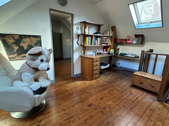Le dernier niveau abrite un bureau lumineux, une troisième chambre sous les combles et un grenier aménageable, idéal pour créer une quatrième chambre, une salle de jeux ou un espace de télétravail.