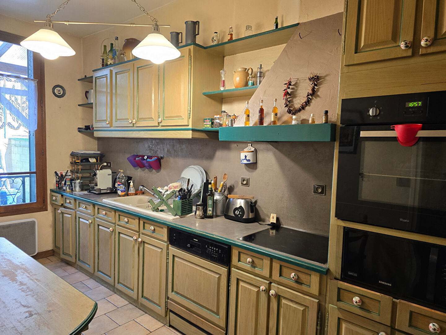 Le rez-de-chaussée propose une belle pièce de vie traversante, baignée de lumière, avec un espace séjour-salle à manger sublimé par une cheminée d’époque. La cuisine indépendante, entièrement équipée, s’ouvre sur un cellier attenant, idéal pour un rangement optimisé. Un WC séparé complète ce niveau.