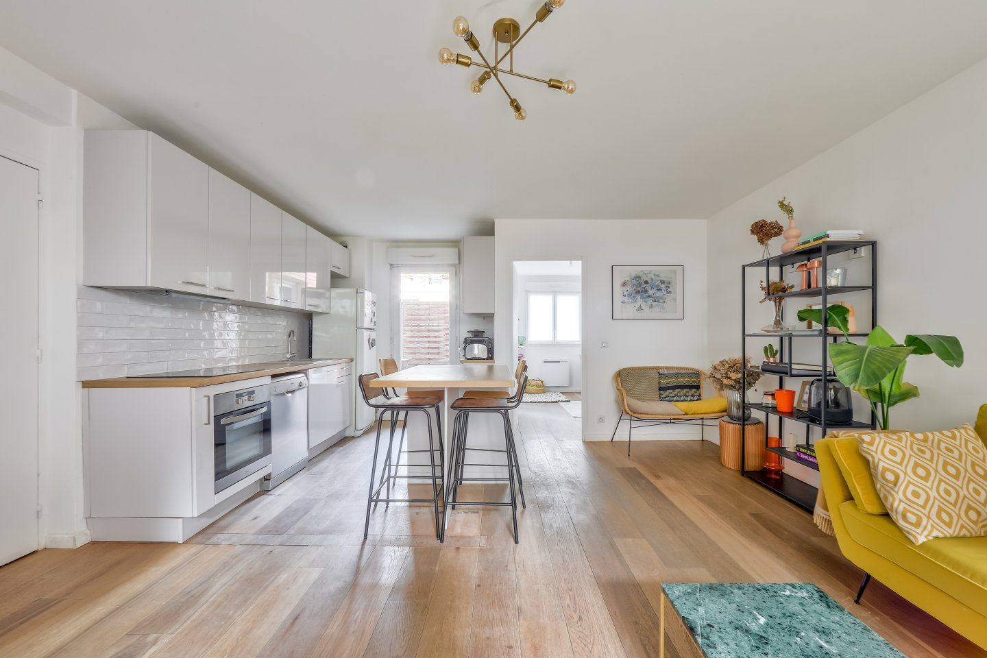 Passée l’entrée desservant une première chambre spacieuse avec son dressing, une salle d’eau et des toilettes indépendantes, vous arrivez sur une vaste pièce de vie traversante, s’ouvrant d’un coté sur une discrète terrasse et de l’autre sur un jardin privatif arboré de près de 60m² à l’abri des regards. La cuisine ouverte refaite en 2022 tout équipée avec son ilot central apporte à l’ensemble modernité et convivialité. Une seconde chambre doublement exposée se prolongeant sur la terrasse complète cette belle proposition.