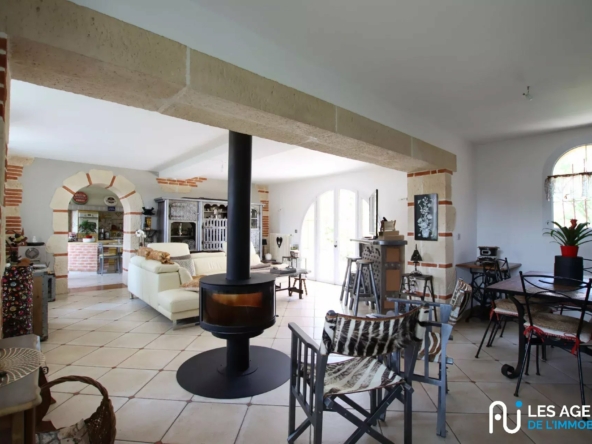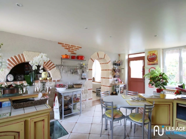 Grande maison de charme avec piscine – Jargeau Au cœur d’un écrin de verdure, cette maison atypique allie charme de l’ancien et confort moderne. Proposée par Les Agents de l’Immobilier Orléans, elle offre de beaux volumes, une ambiance chaleureuse et une rénovation soignée. Le séjour de 40 m², baigné de lumière, est sublimé par une cheminée récente. La cuisine indépendante est aménagée et la suite parentale combine chambre, bureau et salle de bains avec douche. De plus, le rez-de-chaussée est composé d’une buanderie, de deux WC et d’une chaufferie. À l’étage, un vaste palier prolongé par un couloir doté de nombreux rangements mène à trois chambres, une salle d’eau et des WC indépendants, complétant ainsi l’espace nuit. À l’extérieur, le terrain arboré accueille une piscine chauffée de 5×12 m, une grande terrasse ensoleillée, un pool house, un atelier et une cave voûtée avec une vue depuis la cuisine. Dotée d’un système de chauffage performant (pompe à chaleur + fioul), cette maison a bénéficié de nombreuses améliorations. Son DPE est en C. Un lieu singulier, prêt à accueillir vos projets. Contactez-nous pour découvrir ce que cette maison a encore à vous révéler !