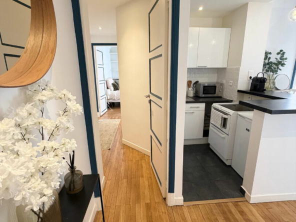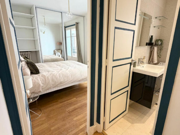 Boulevard Maurice Barrès, au 2ème étage avec ascenseur d’un bel immeuble haussmannien avec gardien, découvrez cet appartement 2 pièces meublé de 43,85 m², calme et bien agencé, donnant sur une petite cour.