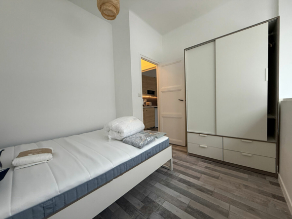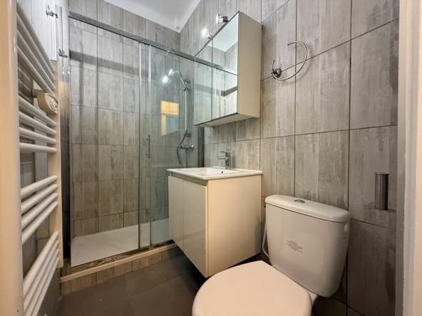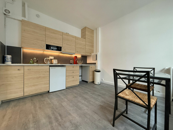 Dans un immeuble gardienné et fraichement ravalé, appartement de deux pièces de 27m² en parfait état situé au 1er étage loué en meublé. Il se compose : d’une entrée, d’une pièce principale avec cuisine entièrement équipée et aménagée, chambre avec rangements, salle d’eau et wc. Buanderie.