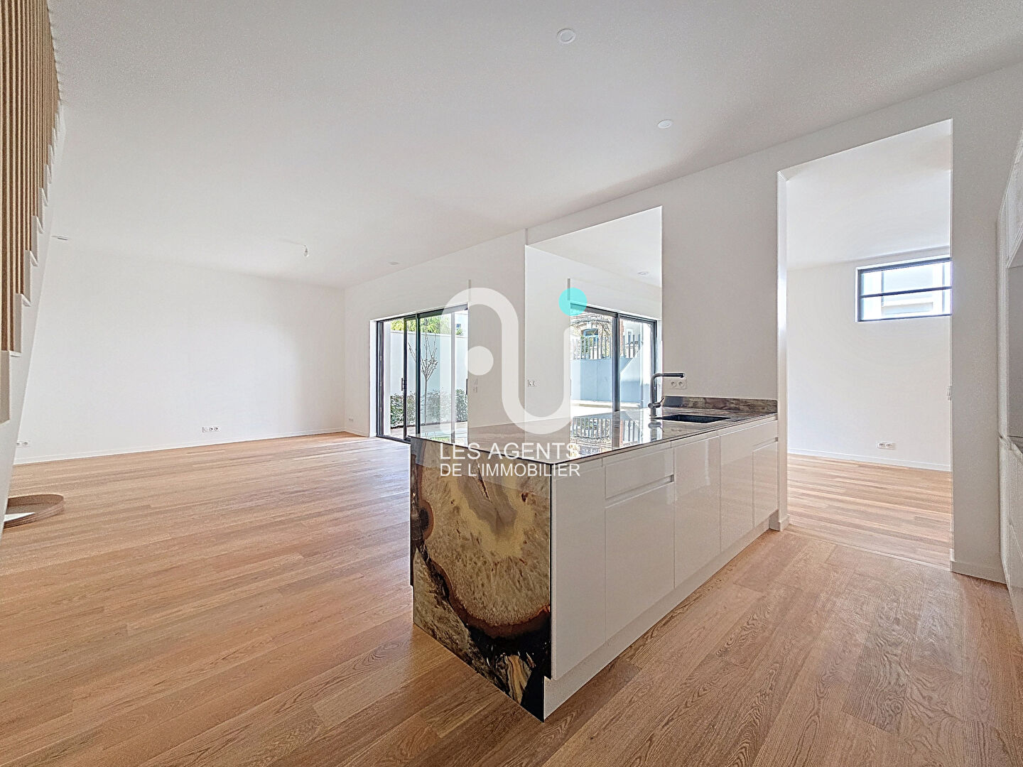 Comprenant au rez de chaussée : une entrée avec rangement, une très belle pièce à vivre de 60m² avec cuisine ouverte donnant sur un patio de 20m² , buanderie, wc.