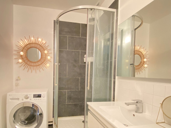 Il se compose d’une grande pièce de vie de 23,20 m² avec séjour et cuisine ouverte aménagée, d’une chambre de 10,55 m², d’un dressing de 1,80 m², d’une salle d’eau et d’un WC séparé.