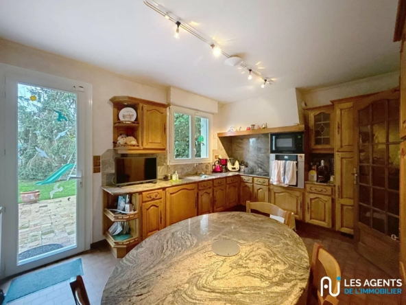 Maison 120 m² idéalement placée Les Agents De L’Immobilier vous proposent cette maison idéalement située à proximité des commerces et des axes de circulation. Vous disposez d’une belle entrée, un double séjour traversant avec cheminée, une grande cuisine indépendante avec accès sur la terrasse et le jardin orientés plein ouest, une chambre, un wc et une salle d’eau. A l’étage, un palier permet de desservir 3 autres chambres, une salle d’eau et un wc. Vous disposez également d’un sous-sol complet avec une partie garage pour mettre votre véhicule à l’abri ! Les agréments d’une vie de famille réussie se prolongent à l’extérieur avec une belle parcelle arborée de 730 m² orientée plein ouest, à l’abri des regards et dans un secteur calme et pavillonnaire. Contactez-nous !