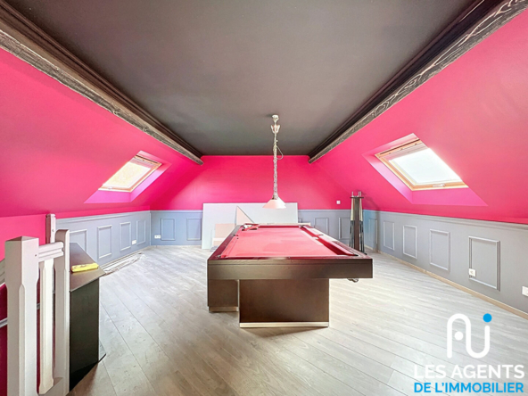 A l’étage une grande mezzanine de plus de 20m2 pouvant être recloisonnée en chambre, une chambre, un bureau et un espace