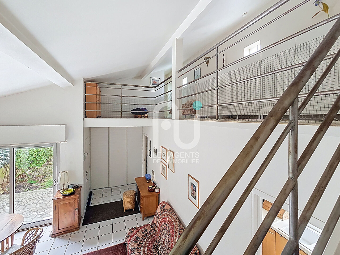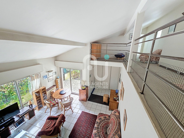 Elle se compose au rez-de-chaussée d’une entrée avec rangements, d’un vaste séjour cathédrale de 25 m² exposé sud Ouest, d’une cuisine aménagée et équipée, de deux chambres et d’une salle de bains avec WC.