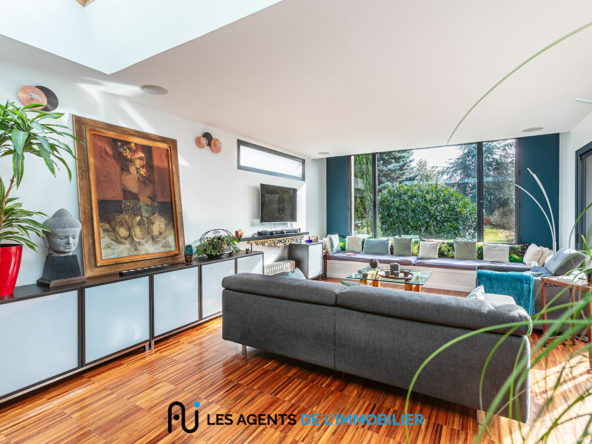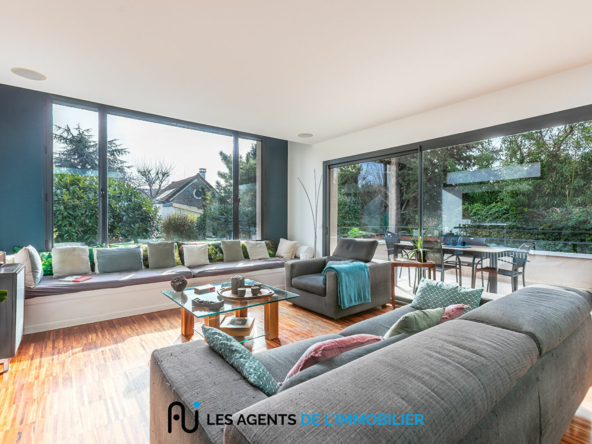 D’une surface habitable de 225 m² (et 290 m² au total), elle offre un vaste séjour lumineux très bien orienté, donnant accès à une agréable terrasse. La maison comprend cinq chambres ainsi qu’un bureau, dont une belle suite parentale au rez-de-jardin, garantissant confort et fonctionnalité.
