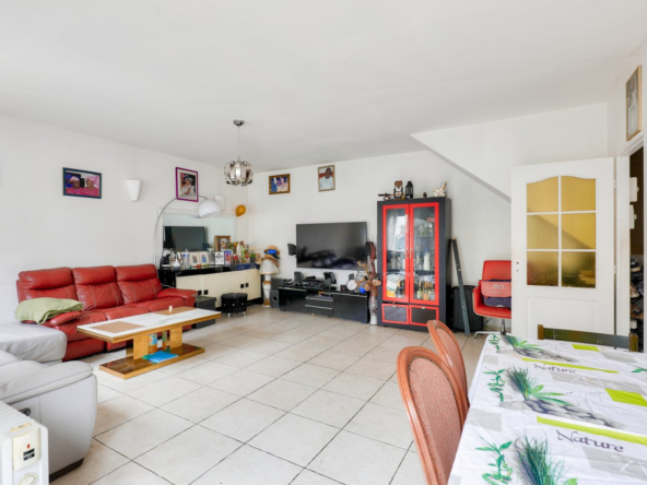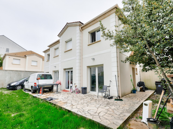 A Bezons, rue Foulard, proche centre-ville et marché, au calme et en lot arrière, exposée sud, maison récente 5 pièces de 125 m² habitable environ, édifiée en R + 1 sur vide-sanitaire, qui se compose comme suit :