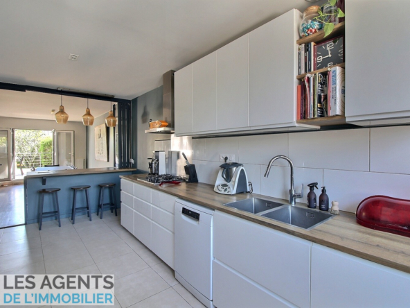 – Une cuisine moderne qui s’intègre naturellement à la pièce de vie (parce que oui, on veut cuisiner ET participer aux discussions)
