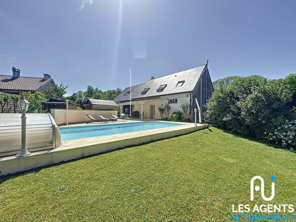 Dans un cadre calme et verdoyant, découvrez cette superbe maison en forme de longère construite en 1900 et agrandie en 2000, mêlant le cachet de l’ancien, le contemporain et le confort moderne. Aménagée avec goût, cette maison est un véritable coup de coeur.