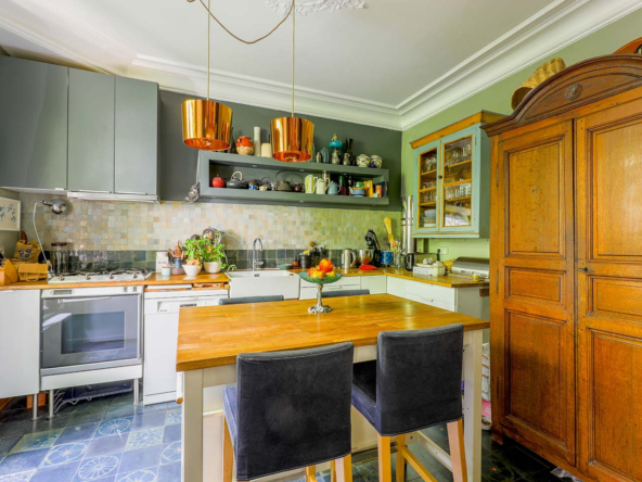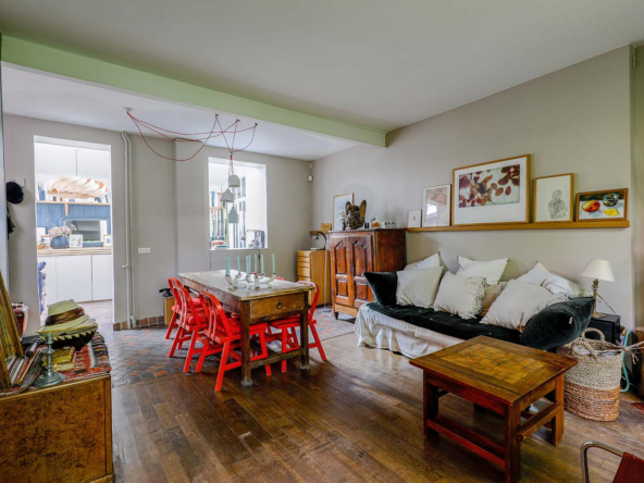 Le perron vous mène à un chaleureux double séjour, une spacieuse cuisine équipée, un bel espace de vie illuminé par de larges fenêtres de toit.