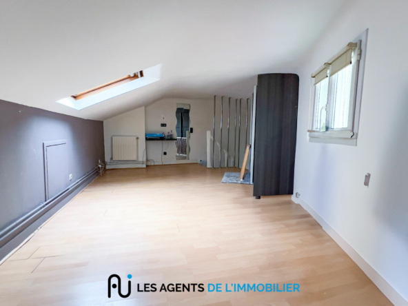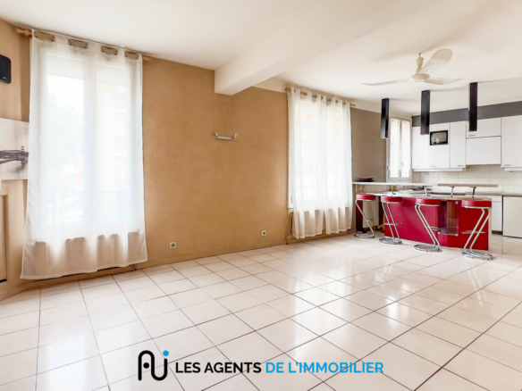 Les Agents de l’Immobilier vous proposent cette maison de ville de 3 pièces. Il se compose d’une entrée avec rangement, d’un grand salon/séjour avec cuisine ouverte et aménagée, ainsi que d’une salle d’eau avec WC. A l’étage, vous découvrirez une chambre et une pièce traversante pouvant servir de bureau ou de seconde chambre.
