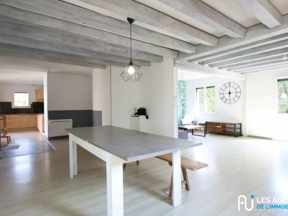 Maison des années 80 – 4 chambres – Grand jardin – Quartier calme proche La Chapelle-Saint-Mesmin / Chaingy Située dans un quartier résidentiel paisible, à seulement 5 minutes de La Chapelle-Saint-Mesmin et à proximité immédiate de toutes les commodités offertes par Chaingy, cette maison familiale construite dans les années 80 saura vous séduire par ses volumes généreux et son authenticité. D’une surface habitable de plus de 130 m², elle se compose de : Une pièce de vie spacieuse et très lumineuse avec cheminée, Une cuisine aménagée et entièrement équipée, 4 belles chambres, Une salle d’eau et une salle de bain, De nombreux rangements. Les poutres apparentes apportent un charme certain à l’ensemble, mêlant caractère et confort. Vous disposerez également d’un sous-sol complet, idéal pour le stationnement, le stockage ou la création d’un espace atelier/buanderie. Le tout est implanté sur un terrain arboré de plus de 1000 m², parfait pour les moments de détente en extérieur. Chauffage électrique – Double vitrage – Environnement calme et agréable. Un cadre de vie privilégié à deux pas des écoles, commerces et accès routiers. Une visite s’impose ! Contactez-nous pour plus d’informations.