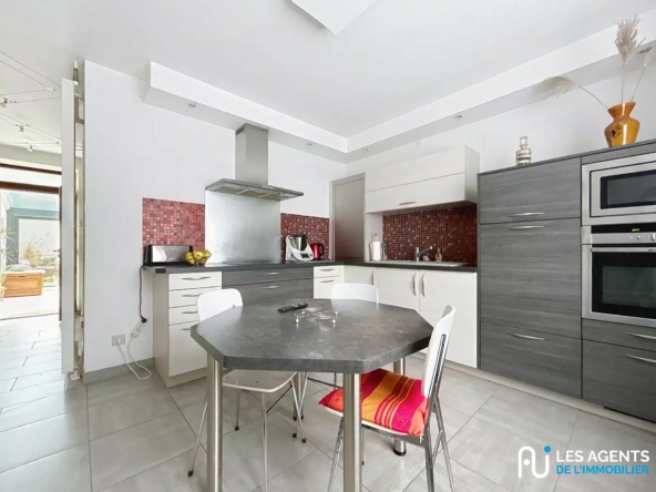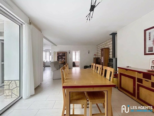 Maison familiale 5 pièces 120 m² Les Agents de l’Immobilier Orléans vous propose cette maison familiale située dans la commune de Saint-Hilaire-Saint-Mesmin, sur une parcelle de 773 m². Dans un environnement calme, cette belle maison de 120 m² offre un cadre de vie agréable et pratique. Elle comprend au rez-de-chaussée : une véranda, un WC indépendant, un double séjour de 35m², une cuisine équipée, deux chambres dont une avec salle d’eau. À l’étage, un palier dessert deux chambres dont une en enfilade avec dressing, une salle d’eau et un WC. À l’extérieur, vous profitez également d’un agréable jardin ainsi que d’une dépendance comprenant une cuisine et une salle de musique. Une autre partie de la dépendance abrite un garage, tandis que le reste de l’espace peut être aménagé selon vos besoins et votre convenance. N’hésitez pas à nous contacter pour une visite !