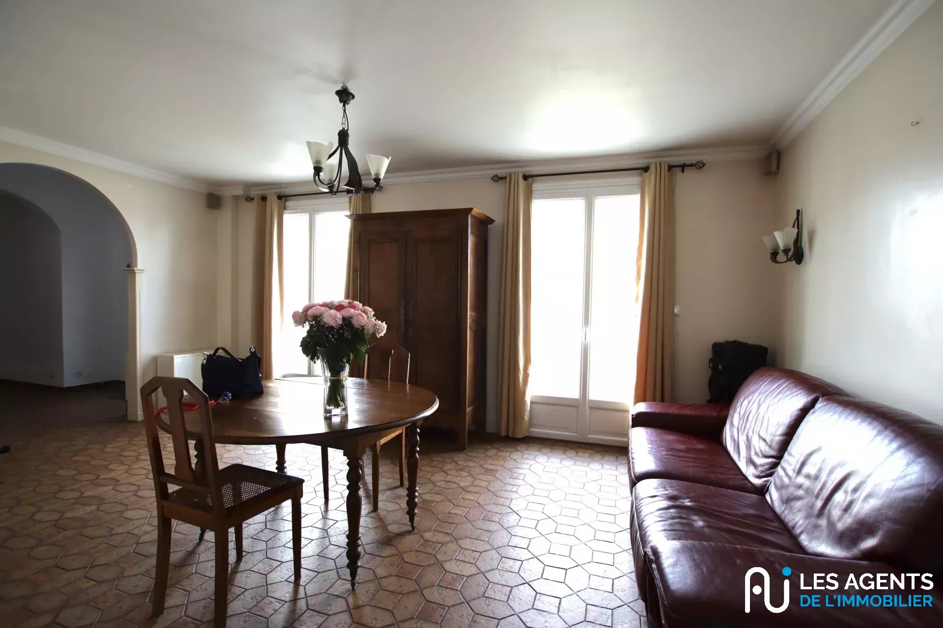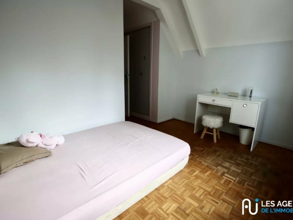 Maison familiale de 5 pièces Sur un terrain de 877 m², charmante maison élevée sur sous-sol total comprenant au rez-de-chaussée une entrée, un salon-séjour lumineux avec conduit de cheminée existant, une cuisine séparée aménagée et équipée, ainsi qu’un dégagement desservant deux chambres dont une avec placards, une salle de bains et un WC. À l’étage, un palier avec rangements mène à deux chambres supplémentaires, dont une avec placards, ainsi qu’à une salle d’eau avec WC. Le sous-sol total offre un grand espace comprenant un garage, une buanderie, une pièce aménageable et une cave. La maison dispose d’un chauffage électrique et de menuiseries en PVC double vitrage. Les atouts de ce bien : une excellente situation géographique à proximité immédiate de la tangentielle, de l’autoroute, des commerces, de la clinique, des transports et des écoles, ainsi qu’un agréable jardin arboré et un sous-sol total offrant de multiples possibilités d’aménagement.