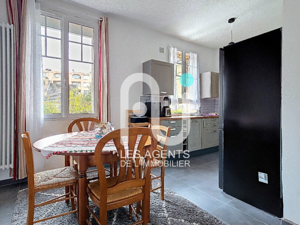 Cette maison d’habitation élevée sur deux niveaux, d’une surface d’environ 70 m², se présente sous la forme d’un 3/4 pièces parfaitement agencé. Dès l’entrée, vous découvrirez un séjour double lumineux, bénéficiant d’une belle hauteur sous plafond et d’une triple exposition, assurant une luminosité naturelle tout au long de la journée. La cuisine aménagée et équipée s’intègre harmonieusement à l’espace de vie.