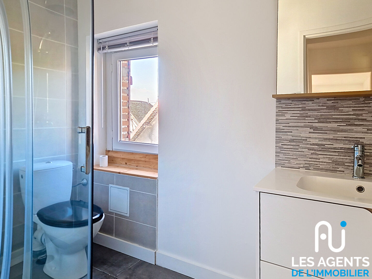 A l’étage, un espace nuit fonctionnel composé de deux chambres, dont une avec un espace dressing ou bureau, idéal pour le télétravail, ainsi qu’une salle d’eau avec WC.