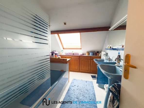 Le deuxième étage, aménagé sous combles, propose une chambre supplémentaire ainsi qu’un espace bureau, idéal pour un adolescent.