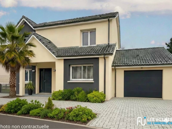 Maison récente de 109 m² – Construction juin 2019 – Sous garantie décennale – En second rang Découvrez cette belle maison moderne de 109 m², construite en juin 2019 et bénéficiant encore de la garantie décennale. Située en second rang, elle offre un cadre de vie calme et préservé, à l’abri des nuisances de la rue – un véritable atout au quotidien. Au rez-de-chaussée : Vous profiterez d’une superbe pièce de vie lumineuse et spacieuse de 52 m² avec cuisine ouverte entièrement équipée (Cuisinella). Cet espace offre la possibilité d’aménager une chambre supplémentaire selon vos besoins. Un cellier ainsi qu’un WC indépendant complètent ce niveau. À l’étage : L’espace nuit comprend 3 belles chambres de 12 m² minimum, dont 2 avec placards intégrés. Une salle de bains avec baignoire et douche, ainsi qu’un WC indépendant, viennent parfaire l’étage. Prestations : * Pompe à chaleur * Chaudière gaz hybride avec plancher chauffant * Volets roulants électriques Extérieurs : * Garage (auto-construction, hors garantie décennale) * Parcelle de 787 m² * Taxe foncière : 1 320 euros Maison fonctionnelle, économique et idéale pour une famille, alliant confort moderne, beaux volumes et tranquillité grâce à son implantation en second rang.