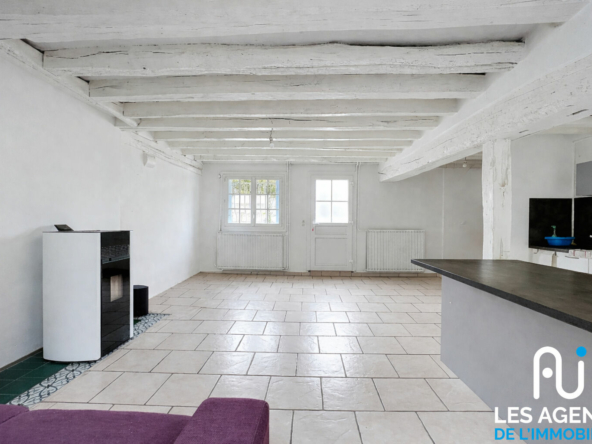 Dès l’entrée, vous accédez à une belle pièce de vie lumineuse et chaleureuse, avec poêle à granules et une cuisine équipée et aménagée. Toujours au rez-de-chaussée un WC, une buanderie avec chaudière gaz de ville.