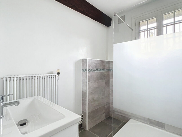 A l’étage, un couloir qui dessert 4 chambres, dont deux avec placard et une de 25m², une salle d’eau avec douche italienne et un WC indépendant.