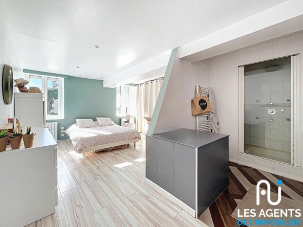 Une cuisine semi-ouverte, aménagée et équipée, complète cet espace convivial. Le rez-de-chaussée propose également une suite parentale avec salle d’eau, ainsi qu’une buanderie et un WC séparé.